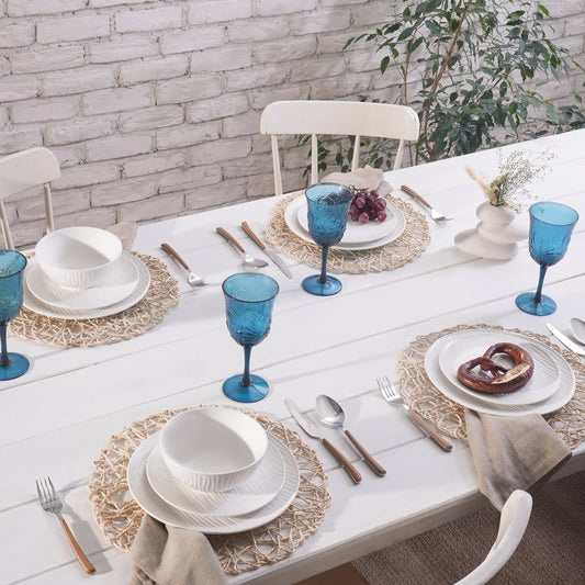 Ripple 12-Piece Porcelain Dinner Set for 4 People, White