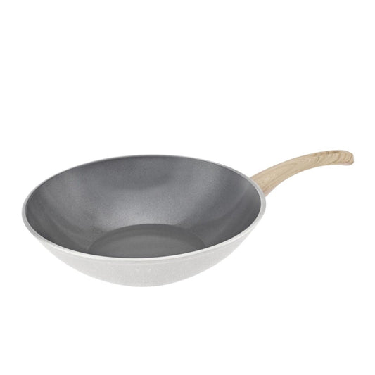 Swiss Crystal Induction Wok Pan, 28cm, Creamy