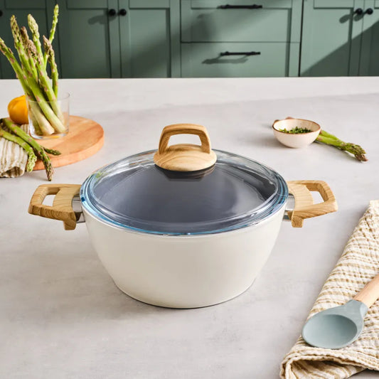 Swiss Crystal Induction Stockpot with Lid, 24cm, Creamy